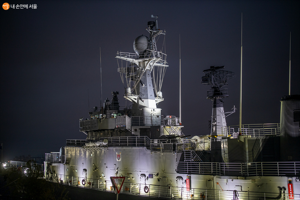 원형 그대로 보존되어 전시 중인 '서울함'의 야경이 멋스럽다 ⓒ임중빈