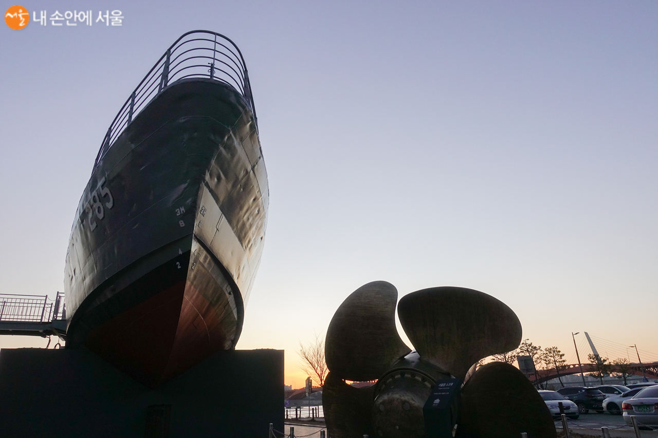 잠수함과 서울함의 스크루 그리고 한강 위에 떠 있는 서울함 Ⓒ김인수
