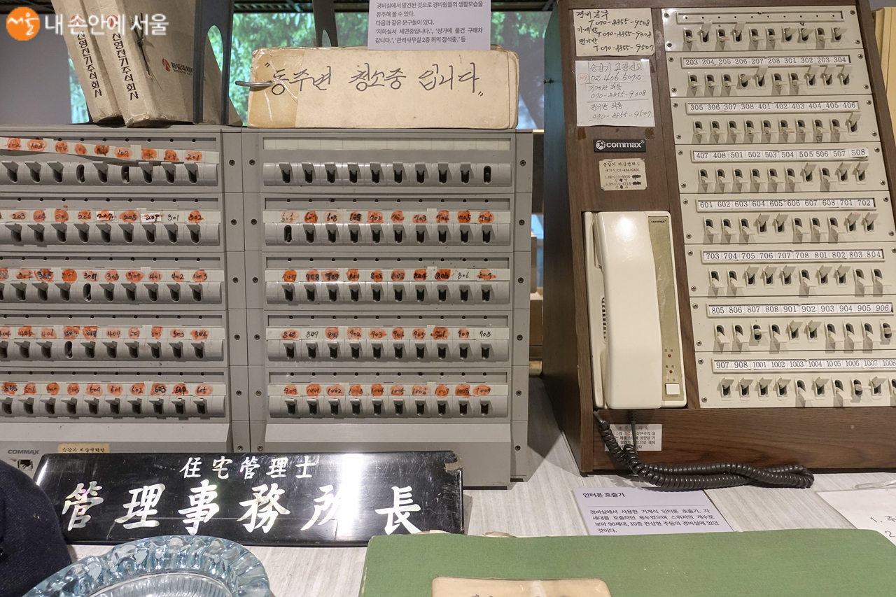 제1전시실 안에 또 다른 '기록의 발현 : 주공아파트 주민들의 기록' 이 전시 중이다. 재개발을 앞둔 둔촌, 고덕, 개포, 과천 주공아파트 주민들이 스스로 일궈낸 시민 기록들을 엿볼 수 있다. 주택관리사 명패가 빛난다 Ⓒ김인수