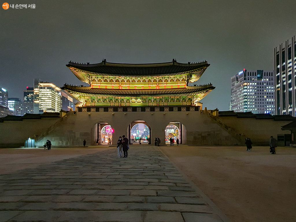 경복궁의 정문인 광화문으로 야간관람을 하러 시민들이 들어오고 있다 ⓒ유서경
