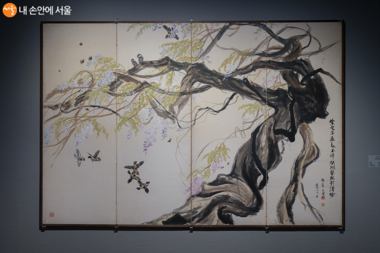 박래현 작가가 등나무를, 남편 김기창 화백이 새를 그렸다. 부부 공동작품 Ⓒ김인수
