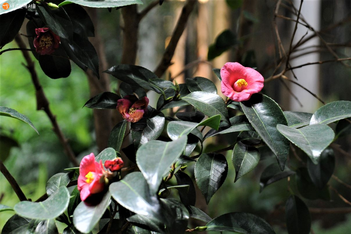 지하 공간임에도 생육 조건이 완벽하여 동백이 만개하였다 ⓒ조수봉