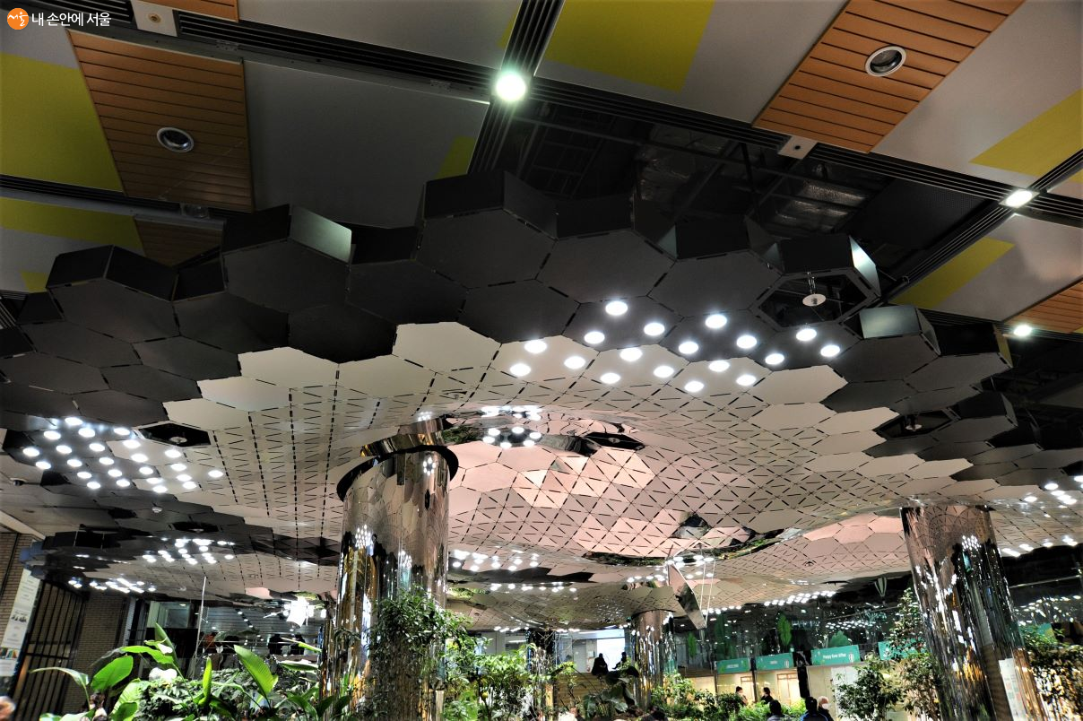 정원 상부는 라이트 캐노피를 활용하여 차별화된 조명을 연출한다 ⓒ조수봉