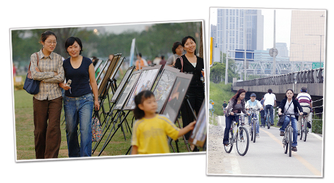보도블럭 재정비, 여성화장실 및 주차구역 등 보강 여성들이 느끼는 행복감은 작은 부분에서 시작된다. 예를 들면 하이힐 굽이 빠지기 쉬운 보도를 정비한다던지, 여성화장실을 늘려 불편함을 없앤다던지 하는 부분에서 여성들은 만족감을 느낀다. 얼핏보면 지나치기 쉬운 일들이지만, 이런 생활 속 불편을 줄여주는 것이야 말로 여성이 행복한 도시를 만드는 첫걸음이다. 실제로 서울시가 실시한 인터넷여론조사에서 여성이 남성보다 더 불편을 느끼는 공간으로 공중화장실이 가장 많이 꼽혔다.(67.4%) 이런 여성들의 의견을 참고해 서울시는 2010년까지 372억 원을 투입해 여성 화장실 변기를 468개 추가 설치한다. 이미 공원시설의 여성친화적 시설 보강을 위해 지난달 서울숲 내 커뮤니티센터가 준공됐고, 공영주차장에는 여성ㆍ임산부 우선 주차구획 설치 및 지하주차장 조도 개선, 잠실역에는 여성을 위해 주차구획 너비를 확대했다.