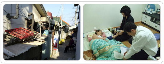 건강 관리 전담인력 배치 및 전염병 조기검진 예방시스템 구축 에너지ㆍ난방대책도 마련된다. 먼저 교체가 필요한 저효율 조명기기를 전량 절전형 형광등으로 교체하고, 불량전선 및 콘센트 교체공사도 병행한다. 수리가 필요한 출입문 및 창호 502개는 한국에너지복지재단에 의뢰하여 개선하고, 민간단체의 해비타트 사업과도 연계해 진행한다. 또한 시설개선이 임대료 상승을 유발하지 않도록 가옥주와 협약을 추진한다. 응급환자에 대해서는 119와 협조하여 우선 이송 후 치료받을 수 있도록 하고 치료비가 없는 경우에는 ‘미수금 대불제도’를 활용해 극빈환자에 대한 지원을 마련한다. 이와 함께 서울의료원, 보라매병원 등 3개 시립병원과 장애인치과병원의 도움을 받아 ‘현장이동 종합진료실’을 주 1회 이상 운영한다. 특히 내년에는 정신보건 전문요원(2명)을 배치하여 정신질환자, 우울증, 알코올 중독자 등을 관리할 수 있도록 시스템을 정비한다. IT를 활용한 ‘홀몸노인 및 중증환자 케어시스템(안심폰)’도 확대된다.