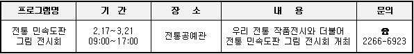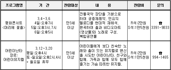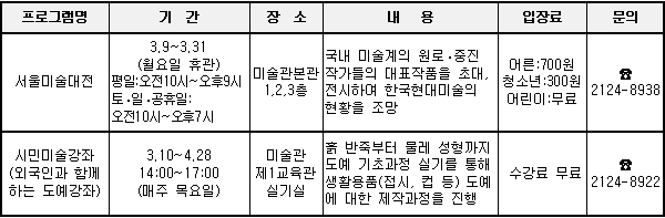 서울문화재단, 세종문화회관 등에서는 따뜻한 봄을 기다리는 시민들을 위해 다양한 전시와 공연을 마련했다.