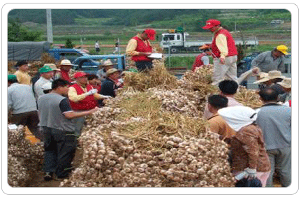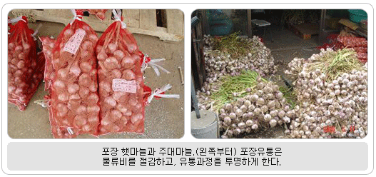 “포장 햇마늘, 품질우수한 국산이니 안심하고 드세요~” 서울시농수산물공사가 지난해에 이어 올해도 햇마늘 포장출하를 적극 추진, 이에 대한 지원을 아끼지 않을 계획이다. 농산물 포장유통은 물류비 절감과 유통의 투명화를 도모하는 핵심 사업이다. 그러나 과일류가 포장유통이 정착된 것에 반해 햇마늘과 무·배추 등 일부 채소류는 아직도 비포장 상태로 유통되는 실정. 전국 공영도매시장 마늘 거래량의 60% 이상을 점유하는 가락시장은 이같은 불합리한 유통 관행을 개선하고, 우리 농업의 경쟁력을 확보하기 위해서 포장화 정착에 모든 노력을 기울이고 있다. 농림부의 2006년 마늘포장화 정착대책에 따라 올해도 가락시장에 비포장 햇마늘 반입은 금지된다. 따라서 가락시장에 햇마늘을 출하하려는 출하자는 줄기가 붙어있는 마늘(주대마늘)이 아닌, 그물망이나 골판지 등 포장재를 사용하여 3kg(50개), 5kg(50개, 100개)단위로 포장출하해야 된다. 포장출하를 적극 장려하기 위해 공사는 4~7월에 포장 출하되는 햇마늘의 경우 출하자에게 포장재 비용을