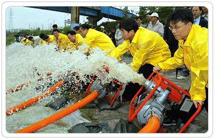 가능성이 높은 재개발공사장·재건축공사장 등에 대한 사전점검과 정비를 지난달 완료한 상태. 한편 집중호우 시 침수가 예상되는 올림픽대로, 한강철교 하단 강변북로교, 동부간선도로의 경우 침수수위 1m전, 관할 경찰서와 협의하여 교통을 통제하며, 정식개통 이후 첫 여름을 맞이하는 청계천의 경우 강수확률 60% 이상이면서 강수가 시작되는 초기단계에 안전요원을 배치해 출입을 통제할 예정이다. 그런가하면 이재민이 발생할 경우 학교·교회·관공서 등 613곳에 59만 여명의 수용능력을 확보하고 담당공무원을 지정해 관리하도록 했으며, 침수주택 수리비 지원 및 각종 지원을 위해 1,754억원(4월말 현재)의 복구지원비를 확보했다. 또 이재민 구호를 위한 재해구호센터를 이재민 구호반, 의료반, 전염병 관리반, 위생반 등 4개반으로 편성해 운영한다. 재해발생시에는 이재민 지역에 물탱크(3톤) 10개를 설치하고, 급수차 등 121대와 필요시 129대의