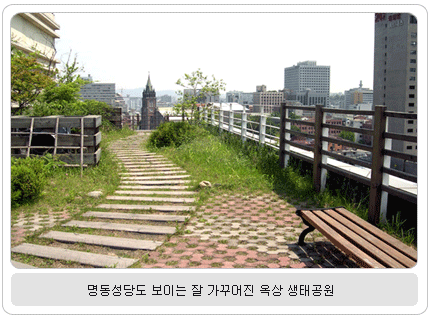 옥상에 작은 생태공원을 꾸며 놓았다는 소식을 듣고 명동 유네스코회관을 찾아갔다. 정문 안내실에서 위치를 문의하고 뒤편에 있는 엘리베이터를 타고 마지막 운행 층인 11층에 내려서 계단을 통해 12층 옥상으로 올라가니 약 190평의 아담한 생태공원이 나타났다. ‘작은 누리’라는 이름인데 소생태계를 의미한다고 한다. 그동안 도시의 옥상은 방치되어 쓸모없는 공간이 되어왔는데 도시의 생태계를 복원하기 위한 공간으로 탈바꿈을 시작하고 있다. 서울시의 옥상녹화사업계획에 동참하고 도시 생태계 연구 및 지역사회의 학교와 시민들을 위한 환경교육의 장소로 활용되고 있고 매달 마지막 주 수요일에는 ‘도시생태문화학교’가 열리고 있는데 뜻있는 사람들에게 인기가 높다.