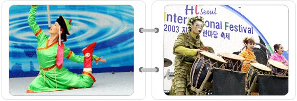 ■ 세계의 맛과 멋이 하나로, ‘세계 음식전’ 서울의 5월은 축제로 무르익는다. 4월 30일 전야제를 시작으로 막을 올리는 ‘하이 서울 페스티벌’은 축제 기간 내내 시민들의 마음을 사로잡을 다양한 이벤트를 선보인다. 세계를 한 눈에 느끼고 싶은 시민은 5월 1일 서울광장에서 52개국이 참가한 가운데 개최될 ‘지구촌 한마당’에 참가해 보자. 세계의 다양한 문화를 체험할 수 있는 이 행사는 서울 주재 공관원과 상사원, 근로자, 관광객과 시민은 물론 각국 자매 도시들이 참여하는 가운데 이루어진다. 1일 오후 1시30분부터 서울광장 주무대에서 펼쳐지는 지구촌 한마당의 공식행사는 몽골 울란바타르시와의 교류 10주년 기념행사로 시작된다. 이어서 2시30분부터 지구촌 한마당의 시작을 알리는 개막식과 북경, 모스크바, 베를린, 바르샤바, 앙카라, 보고타, 호놀룰루, 나이로비, 아스타나 등 9개 해외 자매도시들의 전통공연단이 펼치는 세계민속공연 및 우리나라 대표단의 축하공연이 함께 어우러진다. 이와 함께 무교로와 시청 뒷길에서는 세계 29개국의 민속공예품을 전시하고 판매하는 풍물전과 14개 팀의 주한 외국인 아마추어 공연단이 참여하는 소무대 공연이 레크리에이션, 마슐쇼 등과 함께 펼쳐진다.
