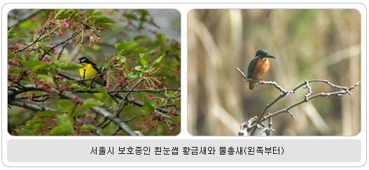 천연기념물 소쩍새와, 흰눈썹 황금새·제비·물총새·박새 등 서울시 보호종도 발견 도심 속 녹지공간으로 많은 시민들이 찾고 있는 어린이대공원에 다양한 야생 동물들이 서식하고 있는 것으로 알려졌다. ‘새 박사’로 잘 알려진 윤무부(경희대) 교수를 중심으로 구성된 5명의 조사단이 30일간 조사한 결과에 따르면, 어린이대공원에 자연 서식하는 야생 동물은 총 33종에 달한다. 조류 17과 28종과, 포유류 2목 4과 5종이 서식하고 있으며, 이 중 조류는 여름철새 13종(46.4%), 텃새 11종(39.3%), 겨울철새 3종(10.7%)과 나그네새 1종으로 분류된다. 또 조사단이 서식을 확인한 생물 중에는 도심에서 보기 힘든 천연기념물 324호 소쩍새와 함께, 흰눈썹 황금새· 제비· 물총새· 박새 등 4종의 서울시 보호종도 포함되어 있다. 포유류는 다람쥐, 청설모, 족제비, 고양이, 집쥐 등 5종이며, 조류는 소쩍새, 중대백로, 쇠물닭, 쇠딱따구리, 청딱다구리, 직박구리, 노랑할미새, 노랑딱새, 쇠유리새, 호랑지빠귀 등 28종이다.
