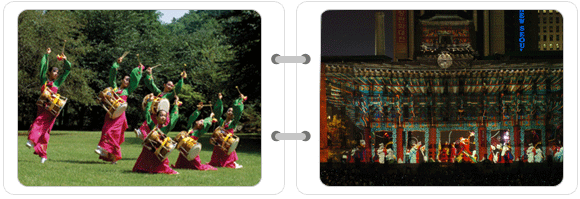 선보인다. 광통교 등 옛다리를 복원한 청계천 상부 지역에서는 다리밟기, 연 날리기 등 전통 민속놀이와 전통공연을 통해 지역