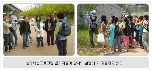 자연생태하천으로 거듭나... 생태학습 프로그램 운영 청계천 복원 이후 가장 큰 변화를 보이는 부분은 단연 환경이다. 청계천 주변의 온도가 종로5가에 비해 1.7~3.3℃ 낮아졌는가 하면 바람의 속도는 2002년 7월(평균풍속 0.7m/s 적용)과 비교하여 청계4가 최대 6.9%, 청계8가 최대 7.8%까지 평균풍속이 증가되는 등 청계천 물길을 따라 새로운 바람 길이 형성되고 있다는 반가운 소식이다. 또 자동차 통행량의 감소로 미세먼지(74㎍/㎥ → 60㎍/㎥), 이산화질소(69.7PPB → 46.0PPB) 등이 격감하는 등 대기질도 개선되었다. 특히 자연생태계에도 엄청난 변화가 일어났다. 복원 이전 98종이었던 생물종다양성이 조류, 어류, 식물류 등 314종으로 늘었다. 이는 청계천 산책로와 하천 바닥 재질이 콘크리트가 아닌 점토질과 돌로 이루어져 있어 버들습지와 생태둔치, 조류, 어류 등의 서식처가 자연스럽게 조성된 결과인 것으로 보인다. 더불어 철새와 물고기가 찾아오는 친환경적 생태하천으로 거듭나면서 청계천은 도심속의 녹색공간으로 확실한 자리매김을 하고 있다. 이외에도 청계천에 대한 시민들의 관심은 생태학습 프로그램 이용에서도 그대로 나타난다. 청계천의 생태환경 및 복원 효과에 대한 시청각교육 및 현장학습, 관찰(수생태계, 야생화, 어류, 조류 등) 등을 하는 생태 탐방과 야생화 등 하천식생 생활사 및 식물을 이용한 환경 놀이를 직접 체험하는 체험학습 등의 프로그램은 지난 4월4일 시작 193회 운영하였다. 이 프로그램에 참가한 인원이 5천597명이고 예약한 시민은 1만2천242명인 것으로 나타났다. 청계천의 보물, 청사랑...2만여명의 회원 활동 청계천의 또 다른 보물은 자원봉사자들의 모임인 청계천을 사랑하는 사람들(청사랑)이다. 5월31일 현재 개인 및 단체회원이 2만142명인 청사랑의 활동은 눈부실 정도다. 시민의 힘으로 만들어 가는 청계천이라는 테마에 걸맞게 이들의 활동 영역 또한 다양하다. 이들은 기초 질서유지를 비롯 장애인도우미, 안전사고예방 및 비상시 시민대피를 유도하는 안전도우미와 시설물 위치 안내, 간단한 쓰레기 수거, 녹지대 보호 등의 활동을 하는 환경 및 안내 도우미, 외국어 통역, 생태·환경교실 운영, 청계천 역사·문화유적을 설명하는 지식나누미 등의 분야에서 활동하고 있다. 1천만 서울시민의 사랑과 청계천을 지켜내기 위한 청사랑 회원의 활발한 활동으로 인해 청계천은 이제