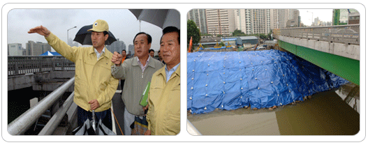 집중호우로 인해 서울시 곳곳이 수마의 흔적으로 신음하고 있는 가운데 서울시는 조속한 복구대책을 수립, 시민 안전 확보와 피해 재발을 위해 발 빠르게 대응하고 있다. 연휴기간동안 서울지역에 내린 비의 양은 총 327mm로, 안양천 제방의 유실로 침수됐던 양평2동 지역과 축대가 파손된 응암2동, 행당1동 등 6개 지구에서 1천256명의 이재민이 발생했다. 침수지역 이재민들은 인근 초등학교 등으로 긴급 수용됐으며 응급구호물품, 모포, 부탄가스 등이 지급됐다. 현재 침수지역은 수해복구 지원 자원봉사자들을 투입해 복구를 돕고 있으며 쓰레기 긴급처리, 전염병 예방을 위한 의료지원반과 방역처리기동반을 가동하고 있다. 전기 및 도시가스는 거의 복구가 끝난 상태이며 침수 가전제품 및 정보기기는 제조사와 협의해 무상수리를 실시하고 있다. 전자제품 무상수리는 가전3사 서비스센터에서 실시 중이며 차량 출장서비스도 병행하고 있다. 특히 중점 피해지역인 양평동에는 현장 AS센터가 운영중이다.