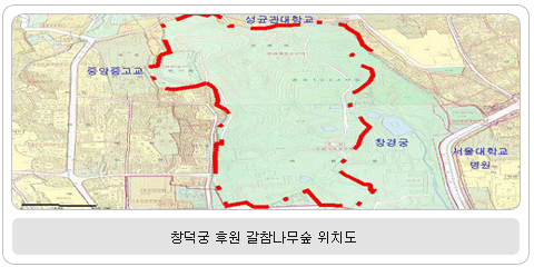 창덕궁 후원의 갈참나무숲(440,707㎡) 역시 서울에서 찾아보기 힘든 대규모 집단군락지로 천연기념물인 새매와 쇠부엉이, 서울시 보호종인 오색딱따구리, 흰눈썹황금새 등 다양한 야생조류가 서식하고 있어 도심 생태공간 중에는 드물게 원시성이 살아있는 지역이다. 현재 이들 지역은 이해관계자(토지소유자 등), 관계 행정기관의 의견수렴 및 환경부 협의, 시 환경보전자문위원회의 심의를 마치고 생태경관보전지역 지정·고시만을 기다리고 있다. 생태경관보전지역으로 지정되면 서울시내 생태경관보전지역은 약 96만 평에 달하게 돼 1999년 밤섬을 제1호 생태경관보전지역으로 지정한 지 7년 만에 서울시 전체면적의 0.5% 수준을 넘어서게 된다. 또 이 지역 내에서 야생 동·식물을 잡거나, 이식·고사시키는 행위 또는 흙이나 돌을 채취하고 불을 놓는