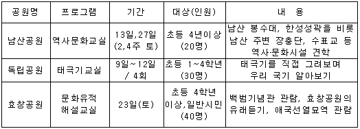 ![]() 생태숲 관찰교실, 문화공연, 역사교실 등 다양.. 취향대로 고르세요~ 가만히 있어도 땀이 주르륵 흘러내리는 더운 여름을 시원하게 날 수 있는 공원 프로그램이 남산공원, 낙산공원, 여의도공원, 보라매공원 등 시내 주요 공원에서 운영된다. 야생화공원 나들이, 토피어리 만들기, 생태숲 관찰교실, 조류탐사교실 등 다양한 프로그램이 마련된 공원에 가면 지친 몸과 마음이 한결 여유 있어질 듯하다. 남산 공원에서는 쉬땅나무, 가중나무 등 여름꽃을 관찰하고 가을을 맞이하는 식물교실과 야생화공원 나들이가 진행된다. 길동생태공원에서는 여름 한 철 시골에서나 볼 수 있었던 잠자리, 나비, 벌, 물속 곤충 등을 관찰하는 교실이 매주 열리고, 매주 목요일과 토요일에는 아침을 맞는 숲 속의 움직임과 한밤중 숲 속 모습을 관찰하는 교실이 진행된다. 엄마 아빠와 함께 TV로만 보던 밭매기와 모내기 등 농작물 관리를 해보는 것도 좋은 추억이 될 듯하다. 처음으로 공원 프로그램을 마련한 서울숲에서는 사슴, 고라니 등 뚝섬 생태숲에서 살아가는 동물들을 찾아가고 나무의 생장을 배우는 시간을 갖는다. 또, 서울숲 물길을 따라가며 환경의 중요성을 깨우치는 프로그램이 진행된다.