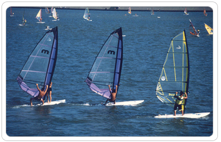 여름에는 뭐니뭐니해도 수상 레포츠가 제격인가보다. 무더위가 연일 기승을 부리던 요즘, 한강시민공원 뚝섬지구에 여름더위를 피해 속까지 시원해지는 수상 레포츠를 즐기려는 시민들이 발길이 끊이지 않고 있다. 뚝섬지구는 형형색색의 돛폭을 휘날리는 윈드서핑 이외에도 모터보트, 수상스키 등을 함께 즐길 수 있어 수상 레포츠의 메카로 확고부동하게 자리잡았다. 전문가가 아니어도 좋다. 현장에서 이루어지는 강습에 참여, 어느 정도 익숙해 진 후 조금씩