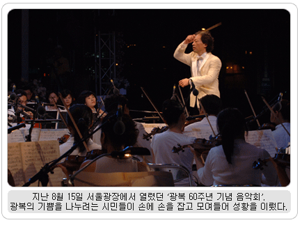 1만2천 명 선착순 입장이니 서둘러 도착하세요 이번 공연에는 서울시립교향악단과 함께 서울시합창단이 참여하며, 유럽을 무대로 활발하게 활동 중인 바리톤 한명원과 국악고등학교 학생과 삼성무용단 등으로 구성된 연합 사물놀이팀이 협연한다. 헨델의 ‘수상음악’과 메시아 중 ‘할렐루야’, ‘왕궁의 불꽃놀이’를 비롯하여, 말러 교향곡 1번 ‘거인’ 제4악장과 베르디의 레퀴엠 중 ‘상투스’가 연주된다.또 바리톤 한명원이 부르는 우리 가곡 ‘청산에 살리라’와, 우리 민요 모음곡 등 주옥같은 음악이 가을밤을 수놓을 예정이다. 이날 공연을 위해 서울광장에는 1만2천 석의 관람 좌석이 마련되며, 일반 시민들은 선착순으로 입장할 수 있으므로 서둘러 도착하는 것이 좋겠다.