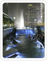 청계천 시점부인 태평로 입구에 가면 청계 광장을 만날 수 있다. 청계 광장엔 볼 거리도 많다. 진입 계단을 따라 들어가면 만남과 화합을 상징하는 8도석과 청계천을
