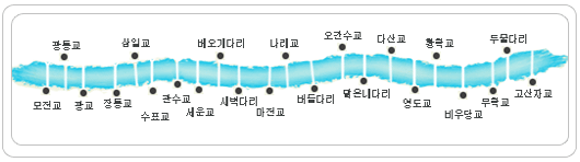 청계천엔 초록만 숨쉬는 것이 아니다. 잃어버렸던 역사도 함께 숨쉰다. 청계천에 놓은 다리는 총 22개. 그 중 단연 눈에 띄는 건 광통교다. 그래서 다리에 새겨진 울툴불퉁한 흔적을 만질 때마다 조선시대 이 다리를 건넜을 많은 사람들을 떠올려 볼 수 있는 곳이다. 정조대왕 능행 반차도