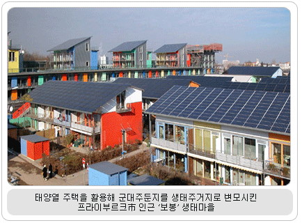 ‘신·재생 에너지 랜드마크’ 조성하고, 친환경 시설 도입건물에 인센티브 부여 취임 후 첫 해외 순방중인 오세훈 서울시장은 환경도시로 유명한 프라이부르크市의 환경 분야의 선진기술을 살펴보고, 정책 현장을 둘러본 후 이같은 ‘신·재생에너지 이용 확대 방안’을 구체화했다. ‘신·재생에너지 이용 확대 방안’에 따르면 우선 서울시 신·재생에너지 랜드마크 건립이 추진된다. 이와 함께 신·재생에너지 분야의 민간투자를 적극 유도할 방침이다. 이와 함께 활용가능한 부지를 서울시가 저렴하게 공급하여 태양광 발전, 하수열 이용 등 신·재생에너지 분야에 대한 민간투자를 적극 유도할 방침이다.
