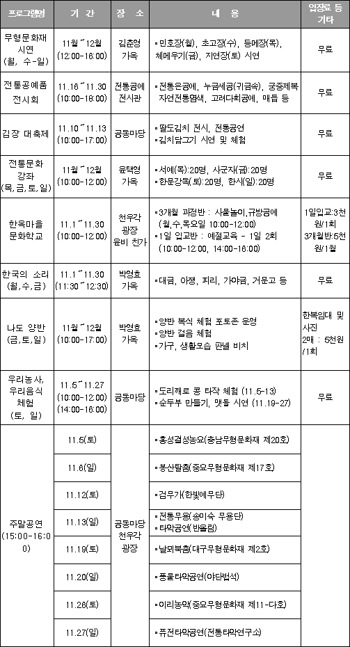 늦가을의 정취가 물씬 풍기는 11월. 거리에 쌓인 단풍과 낙엽만큼 가을을 나누는 문화행사들도