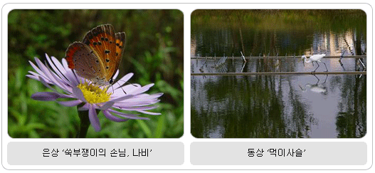 금상을 수상한 원춘호 씨의 ‘숲속 나들이’, 은상을 수상한 김종배 씨의 ‘쑥부쟁이의 손님, 나비’를 비롯해, 동상을 받은 송기원 씨의 ‘먹이사슬’, 김민례 씨의 ‘물놀이’등 서울숲에서 벌어지는 재미있는 장면들이 생생하게 펼쳐진다.