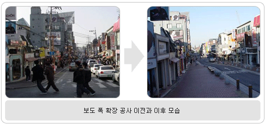 우선, 보도 폭을 넓히고 2개 차로로 운영되던 도로를 1개(3.5m)로 줄여 일방통행으로 만들었다. 그동안 파손돼 걸어다니는 데 불편을 주었던 보도블럭도 주변경관과 어울리게 교체했으며, 전신주 등 지상에 있는 송전선과 배전선을 지하에 매설해 걸어다니는 데 불편함을 없앴다. 분전반 31개소도 인근 건물이나 학교, 공공부지로 옮겼다. 또, 보도에는 차량이 진입할 수 없도록 볼라드(돌말뚝)와 가로벤치 등을 새로 놓고, 기존 가로등 교체와 함께 보도 조명도 새로 설치해 주변 미화에도 신경썼다. 주변 경관을 고려해 이대전철역 출입구 2개소도 새롭게 리모델링 했다. 공연장, 전시장 및 복지시설 설립시 인센티브 제공 한편, 서울시는 대학가 주변이 지나친 상업지구로 확대되는 것을 막기 위해, 사업자가 대학가 주변에 공연장, 전시장 및 복지시설을 설립할 경우 인센티브를 주기로 했다.