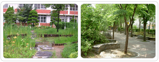 인조잔디 조성, 열린녹지 조성등과 연계해 추진 올해 학교공원화 사업의 특징은 마을 단위의 열린녹지를 조성하는 동시에 학생들에게는 자연학습, 생태연못 등 체험학습장을 중점 조성하는 데 있다. 또 지역주민을 위한 생활체육 시설을 추가 설치하고 편의시설을 보완해 학교를 지역주민들의 운동 및 여가공간으로 조성한다. 특히 학교 공원화 사업과는 별개로 이루어지고 있는 학교운동장 인조잔디 조성(교육인적자원부 추진), 아파트 열린녹지 조성, 그린파킹사업 등과 연계해 시너지 효과를 극대화하고 지역단위의 그린 커뮤니티(Green Community)를 만들어나갈 방침이다. 작년에 조성 완료한 강동구 신암초등학교 인조잔디운동장과 조깅트랙 주변 빈 공간을 집중적으로 녹화하고 체육시설을 설치해 수준 높은 교육공간이자 지역 생활체육의 메카로 변모시키는 사업이 그 한 예다. 올해 추진 예정인 은평구 예일여고 인조잔디운동장 조성사업도 마찬가지로 연계 추진한다.