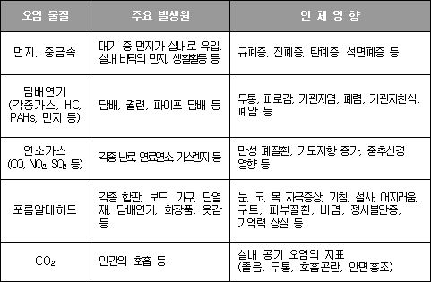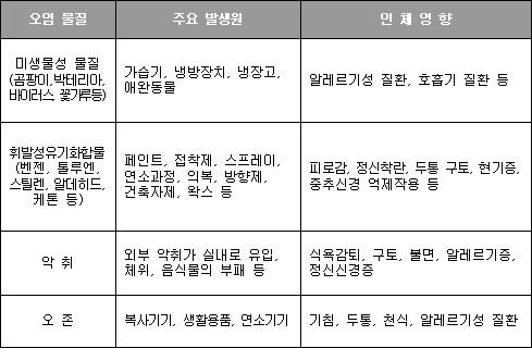 관련 규정없고 실태파악도 안돼 있어 공연장, 예식장, 학원 등 사람이 많이 모이는 공중시설의 실내공기가 체계적으로 관리될 전망이다. 대부분의 사람들이 하루 중 80~90% 이상의 시간을 실내에서 생활하기 때문에 실내 공기오염은 대기보다 인체에 더 큰 영향을 주고 있는 것이 사실이다. 특히 최근 새로 건축된 건물에서 건물증후군이 발생하고, 건축물의 밀폐화에 의한 환기 부족으로 오염원이 증가하는 등 실내공기 오염의 폐해가 날로 더해가고 있어 이에 대한 대책 마련이 시급한 상황이었다.