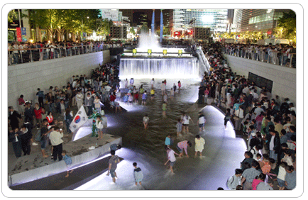 청계천 복원 착공과 함께 논의 시작...지난 10월 계약 체결 청계천 조형물 프로젝트는 2003년 12월 청계천복원사업회의에서 처음 제기된 것으로 알려졌다. 청계천 시점부인 청계광장의 상징적 이미지를 높여야 한다는 필요성에서 출발해 전문가 등이 참여해 수차례 논의를 거듭해 온 것. 이어 2004년 4월 정책회의에서는 청계천 복원사업의 의미를 상징적으로 전달할 수 있는 예술 조형물을 세계적 작가에 의뢰하여 설치하기로 했고, 시립미술관의 작가 추천과 작가의 시안제출 등을 거쳐 지난 7월 서울시 미술장식품분과위원회에서 최종 시안을 확정했다. 한편 청계천 조형물 프로젝트를 진행하는 서울문화재단은 작가측과 제작비 등 구체적인 계약조건을 협의한