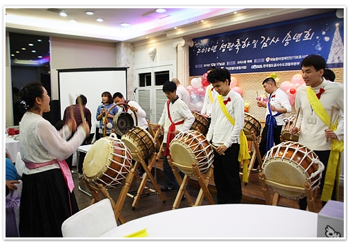 다른 프로그램이 진행되고 있는 시간에도 그는 장애우들을 친자식을 돌보는 엄마처럼 아껴주는 모습이 그렇게 귀해 보일 수가 없었다. 어깨를 다독여 주기도 하고 칭찬과 격려하는 말로 장애우들에게 자신감과 안정감을 심어주고 있었다. 장애우들과 함께 연주한 모듬북 공연이 끝난 후에는 우리가락 가야금 병창으로 크리스마스 노래를 불러 장애우들과 참가한 모든 사람들에게 즐거움을 듬뿍 안겨주기도 했다.