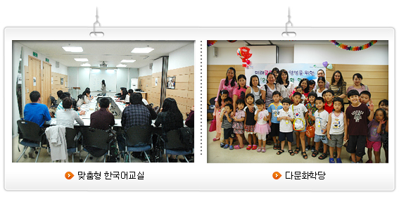 이외에도 한국거주 목적에 따른 ‘맞춤형 한국어교실’도 운영되는데, 이 강좌는 결혼이민자에겐 가정에서 사용하는 표현을, 근로자에게는 근로 현장에서 자주 사용하는 표현을 중점적으로 알려준다. 지난 한 해동안 맞춤형 한국어교실을 통해 약 2천명의 외국인과 다문화가정이 교육혜택을 받았다. 올해는 특히 동화구연을 통해 결혼이민자들이 동화구연 3급자격증을 취득하고, 더 나아가 취업이 가능하도록 하는 모자 동화구연반도 실시한다.