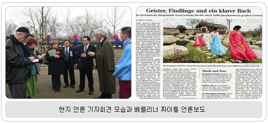 ‘서울정원’이 정식 개원행사를 가졌다. 미뤄 진행된 행사인 만큼 기념행사는 성대했다. 음악회를 시작으로 개최된 행사는 슈베르트 베를린시 부시장과 주독 한국대사, 이한도 한인회장, 슈미트 마르찬 헬러스도르프 부구청장과 현지 언론사, 한인회 등 400여 명의 인사들이 참여해 성황을 이뤘다. 서울시에서는 베를린시 보베라이트시장의 서울시장 초청에 최용호 푸른도시국장이 대리로 참석했다. 한인회에서는 한복을 입고 참석해 현지 언론 등에 많은 관심을 받았다. 또한, 독일 '베를리너 모르겐포스트'(Berliner Morgenpost), '베를리너 짜이퉁'(Berliner Zeitung), '타게스 슈피겔지'(Tagesspiegel) 등 유수의 언론사에서는 서울공원의 개원행사를 대대적으로 보도했다. 서울시는 우호도시에 한국 전통의 공간을 만드는 사업을 지속적으로 추진해 왔으며, 베를린 서울정원은 터키 앙카라시(1973년), 이집트 카이로시(1998년), 프랑스 파리시(2002년)에 이어 네 번째로 만들어진 한국 전통공간이다. 이곳은 경북 경주시 안강읍에 있는 독락당을 모델로 만들어졌다. 독락당은 조선시대의 성리학자인 회재 이언적 선생(1491~1553)이 관직을 그만두고 고향에 돌아온 뒤에 은거하던 곳으로, 조선 중종 11년(1516년)에 건립, 보물 제413호로 지정돼 있다. 정원에는 사랑채 겸 정자인 계정 1동, 솟을대문 1개, 협문 4개가 설치되었고, 소나무, 회화나무 등 우리나라뿐 아니라 독일에서도 잘 자라는 나무 33종 1,637주와 구절초, 금낭화, 수호초 등 초화류 19종 3,819본이 심어졌다. 또 한국 고유의 전통미를 고스란히 살린 계류, 장승, 솟대, 장독대, 종합안내판 등 18종의 다양한 시설이 설치되었다. 문의 : 서울시 공원과 ☎ 02-6321-4174 |