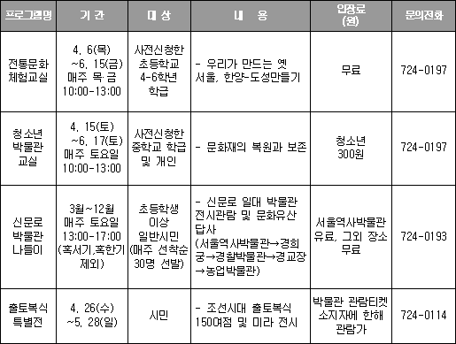 ■ 서울역사박물관 전시 및 교육프로그램