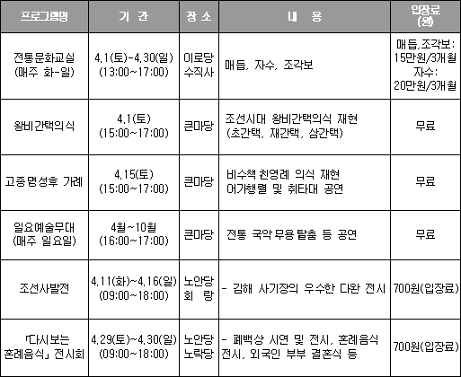▶ 4월의 문화 프로그램