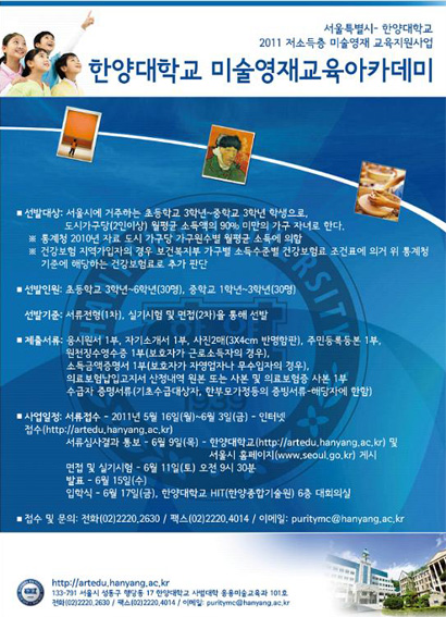 문의 : 한양대학교 사범대학 응용미술학과 사무실 ☎ 02)2220-2630