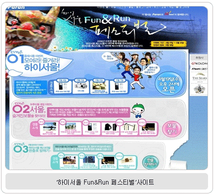 플래시몹 외에도 ‘하이서울 Fun&Run페스티벌’ 사이트(http://hiseoulevent.paran.com/)에는 서울 지도 모양으로 꾸며진 브루마블 게임 속에 숨겨진 퀴즈를 맞히는 ‘서울, 숨겨진 보물을 찾아라’에 참여하면 보물을 많이 찾으면 찾을수록 진짜 보물이 팡팡 쏟아진다. 올해로 네 번째를 맞는 하이서울 페스티벌에 바라는 점을 짤막하게 말하는 ‘한 줄 참여하기 이벤트’에 참가하는 이들에게도 추첨을 통해 푸짐한 선물이 주어진다. 한편, 하이서울 페스티벌의 멋진 행사 모습과 즐거움을 만끽하는 시민들의 모습을 카메라폰이나 디카로 찍어 올리는 ‘하이서울 페스티벌 포토존’ 코너는 페스티벌 개막에 맞추어 5월4일 오픈할 예정이다. 서울시 관계자는 하이서울 Fun&Run페스티벌이 서울 시민의 한마당 축제 하이서울 페스티벌에 대한 네티즌들의 흥미를 돋워 시민 모두가 함께 어울리는 페스티벌을 이끌어 낼 것이라고 기대했다. |