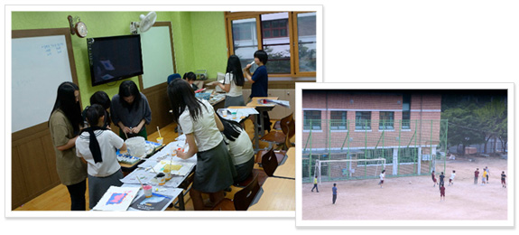 자, 이제 봉화중학교에서의 ‘동행’ 활동을 따라가 보자. 동생 행복도우미가 활동하는 요일은 화요일과 목요일이었다. 화요일에는 14명의 도우미 선생님이 참여 학생 21명에게 영어와 수학을 가르쳤다. 목요일에는 7명의 동행 도우미가 체육시간에는 축구와 농구를, 예능시간에는 핸디코트를 함께 했다. 학교 수업에는 없는 재미있는 과정으로 2시간의 수업이 아쉬울 정도였다. 참여하는 학생도 진지했고, 동생 행복도우미들도 최선을 다하는 모습이었다.