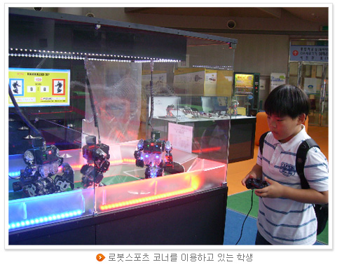 첨단과학과 함께 떠나는 미래를 주제로 펼쳐지는 ‘첨단 이야기’ 코너에서는 세상을 바꾼 발명-소리와 영상의 기록, 미래의 저탄소 친환경 교통수단, 휴머노이드 로봇과 로봇스포츠, 나를 찾아 떠나는 로봇여행 등 청소년들의 흥미를 끌만한 코너가 마련되어 있다. 특히 휴머노이드 로봇과 로봇스포츠 코너는 로봇을 좋아하는 초등 고학년 남학생들의 인기를 독차지하고 있었는데 두 로봇을 조정해 축구게임을 하는 로보빌더컵은 단연 인기 ‘짱’이었다. 하굣길에 이곳으로 곧장 달려 온 초등학교 5학년 학생이 로봇을 조절해가며 축구게임에 열중해 있는 모습이 인상적이었다. 이곳에서는 박수소리에 반응하는 도마뱀로봇, 빛에 반응하는 로봇 등 다양한 로봇의 모습도 볼 수 있다.