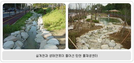 10월 15일 3단계 중 2단계 사업완료 … 산책로, 생태연못, 실개천, 주차장 등 조성 물재생센터에 실개천과 생태연못이 들어서며, 자연스레 시민들이 즐겨 찾는 공원으로 변신했다. 또 2009년 말이면 축구장, 농구장, 테니스장 등 체육시설과 공원까지 들어설 전망이어서 인근 주민들에게 사랑받는 휴식공간이 될 듯하다. 서울시는 그동안 혐오시설로 인식되어 온 강남구 일원동 탄천 물재생센터를 주민 친화형 공간으로 조성하기 위하여 사업비 총 834억원을 들여 하수처리시설인 침전지를 복개하고 그 위에 공원을 만드는 공사를 3단계로 나누어 추진, 그 중 2단계 사업을 마치고 10월 15일 준공한다. 2단계 사업은 총면적 15,600㎡으로 공원 조성은 물론 주변 주택가의 고질적인 주차난 해소를 위해 314면의 주차장도 조성하여 쉼터와 주차시설이 주민에게 돌아가 한 단계 업그레이드 된 생활환경이 될 것으로 기대하고 있다.