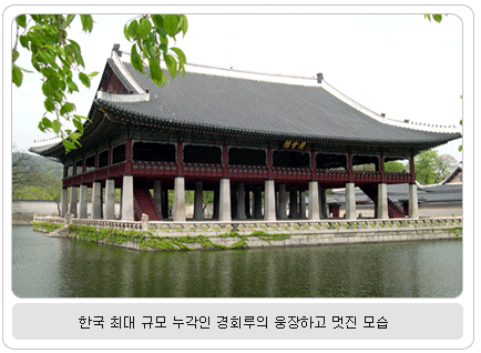 44년 동안 일반인의 출입이 금지됐던 경복궁 경회루(국보 제224호)에 다녀왔다. 일반 공개는 작년 6월부터 했지만 그동안 가보지 못하고 있다가 드디어 기회를 잡았다. 공개는 되었지만 관람할 수 있는 방법은 좀 까다롭다. 관람시간은 3월부터 10월까지 매일 11시, 14시, 16시 3차례뿐이고, 매회 관람인원도 60명으로 제한하고 있다. 게다가 선착순으로 접수하기 때문에 미리미리 준비하고 관람계획을 세워야 한다. 경회루는 조선시대 나라에 경사가 있거나 외국사절이 왔을 때 임금이 연회를 베풀던 장소인데, 경복궁을 창건할 때 태조가 지은 누각이 있었으나 태종12년(1412년)에 크게 연못을 파고 지금과 비슷한 규모로 만들었다고 한다. 48개의 육중한 돌기둥이 받치고 있는 경회루는 조선의 대표적 누각이며 한국 최대 규모를 자랑하는 누각이다. 지금까지도 침하현상 없이 수평을 유지하고 있어서 조선시대의 수준 높은 건축기술을 엿볼 수 있다. 관람객들은 평일이라서인지 대부분이 일본, 중국, 미국 등 외국 관광객들인데 표정을 보니 웅장한 크기와 천장의 모자이크식 연꽃 문양에 감탄하는 눈치였다. 주요국 언어로 설명해 주는 안내기계의 헤드폰으로 열심히 듣는 모습이 진지해 보였는데 그만큼 관심이 많다는 것처럼 보여서 자부심을 느꼈다.