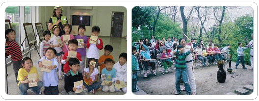 천호공원의 돗자리 영화제 등 프로그램 다채롭게 운영 천호공원에서는 매주 토요일 돗자리 영화제를 실시하는 한편 월드컵공원에서는 꽃누르미 만들기를 비롯 버드나무를 이용하여 곤충을 만드는 버드나무 교실, 하늘교실, 나무교실 등 다양한 자연관찰 체험교실을 운영한다. 길동생태공원에서는 반딧불이, 잠자리, 나비, 벌, 딱정벌레, 꽃피는 나무 등을 관찰하는 프로그램을 비롯 다양한 농작물을 관리하는 농사체험교실, 오감체험 등을 마련하였다. 또 길동생태문화센터는 엄마와 함께 하는 천연비누 만들기, 꽃누르미, 자연생태 관련 전문강좌를 실시한다. ‘동물원 옆 장미원 축제’가 펼쳐지고 있는 서울대공원은 오는 6월30일까지 동물캐릭터 퍼레이드, 환상의 도우매직쇼, 장미공예만들기 등 다양한 이벤트를 실시한다. 월드컵 승리를 기원하는 환상의 월드컵 쇼 행사를 비롯 프랑스, 스페인, 미국 등 세계 17개국의 댄스를 선보이는 월드댄스파티도 펼쳐진다. 능동 어린이대공원에서는 화학의 해인 2006년과 월드컵을 접목, ‘화학과 축구 체험 전시회’를 개최하며 가족단위의 에코스쿨, 놀토 동물학교, 동물설명회 등의 동물학습 프로그램과 낙타 타기, 미니 말타기 등을 매일 운영한다.