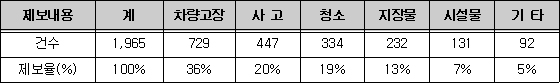 ![]() 차량고장, 충돌사고 등 제보 시민의 적극적인 참여가 자동차 전용도로의 안전성 강화에 큰 힘이 되고 있다. 자동차 전용도로 시민 제보자 모임인 ‘도로사랑 서포터즈’의 활약이 눈부시다. 2007년 한 해 동안 무려 1,965건의 도로 위험요소를 제보했고, 이는 자동차 전용도로의 24시간 도로 순찰대가 1년간 처리한 11,398건의 17.2%에 달하는 수치다. 1,965건의 제보를 분류해보면 차량고장이 가장 잦았으며, 뒤를 이어 충돌사고, 청소 등이다. 특히 차량고장이나 사고, 지장물의 경우 또 다른 사고로 이어질 원인을 차단하고 신속하게 현장을 정상으로 회복한다는 점에서 매우 소중한 제보라 할 수 있다. 이 밖에도 술에 취한 시민이 노들길을 걷는다는 아찔한 제보와 광진교 부근에 버려진 소파를 알려오는 등 한 명의 서포터즈가 많게는 72건을 제보한 경우도 있었다.