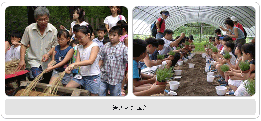 ‘농촌 체험교실’은 오전·오후 각60명의 초등학생을 대상으로 한다. 이 프로그램은 영농장에서 야외수업으로 진행되며 어린이들이 도심에서 접하기 힘든 벼, 보리, 옥수수 등 영농작물 관찰 학습과 맷돌, 홀태, 지게 등 농기구 직접 체험 순서가 있다. 또한 허브 식물을 직접 심어 집으로 가져갈 수도 있다. 1일 2회 오전과 오후로 나뉘어 각각 3시간씩 수업이 진행되며 참가비는 1인당 6천원이다.