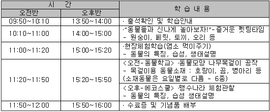 농촌도 체험하고 동물도 체험하고 이제 곧 초등학생들의 여름방학이 시작된다. 학교 공부에 학원 공부에 몸이 열개라도 모자라는 지금의 초등학생들... 방학동안 만이라도 아이들이 회색빛 하늘과 뜨거운 아스팔트 열기에서 벗어나 자연과 친구하며 쉴 수 있도록 하는 건 어떨까. 시설관리공단(www.sisul.or.kr)은 여름방학을 맞아 7월 24일부터 8월 26일까지 어린이대공원에서 ‘농촌·동물 체험교실’을 연다. 도심 어린이들이 가까운 곳에서 재미있고 친근하게 자연을 느낄 수 있도록 하기 위해 에듀테인먼트(Edutainment) 체험 프로그램을 마련한 것이다. ‘농촌·동물 체험교실’은 ‘농촌체험교실’과 ‘동물체험교실’로 나뉘며, ‘동물체험교실’은 다시 ‘동물학교’와 ‘에코스쿨’로 구분돼 운영된다.