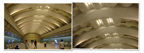운 좋게 2008년 5월에 서울시 도시기반시설본부의 초대를 받아 고속터미널역 공사현장을 견학한 적이 있는데, 공사 중이던 1년 전에 비해 지금은 마감공사가 완료됐고, 주변도 깔끔하게 정리돼 있었다. 앞으로 9호선 고속터미널역은 멋있는 지하철역으로 인구에 회자될 것으로 보인다. 특유의 원기둥 구조와 아름다운 건축설계로 인해 서울 지하철의 대표역으로 떠오른 6호선 녹사평역과 쌍벽을 이룰 만하다. ‘디자인 서울’을 주창하는 서울시에도 드디어 건축의 아름다움을 온전히 즐길 수 있는 지하철 역사가 속속 생겨나고 있는 것이다. | |