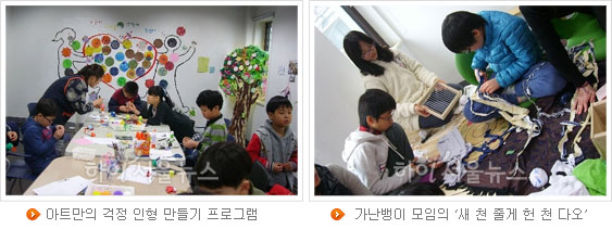 항상 밝기만한 아이들에게도 말 못하는 걱정들이 있을 것. 그런 고민들을 풀어내기 위해 아이들은 자신만의 걱정 인형을 만드는 시간도 있다. 아이들의 걱정거리들을 밖으로 표현해 보는 기회를 만들어준 미술치료 연구단체 아트만의 'Don't worry, be happy' 프로그램.
