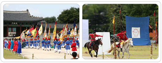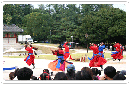 10월 한달은 우리의 한가위 명절을 한껏 느낄 수 있는 행사로 가득하다. 10월의 첫날이자 국군의 날이기도 했던 지난 1일, 경희궁에서 펼쳐졌던 ‘조선시대 과거제 무과시험 재현 행사’에 다녀왔다. 우리의 자랑스러운 전통문화인 조선시대 과거시험의 원형을 발굴, 복원하여 계승, 발전시키고 시민들과 외국인들에게 우리 문화의 향수를 느낄 수 있는 기회를 제공하기 위한 이 행사는 1994년부터 시작해 올해로 13년째를 맞는다. 경희궁의 무과 시험과 함께 경복궁에서는 한시 백일장 형태로 진행한 ‘문과시험’이 함께 진행됐는데, 휴일을 맞아 고궁을 찾은 많은 시민들이 호기심 어린 눈으로 재현 행사를 지켜보았다. 과거시험을 치루기 위해 왕의 입장을 시작으로 차례로 무과시험 치루는 모습이 진행되었는데, 24반 전통 무예시연과 활쏘기 외에 마상 무예 시범은 올해 처음 선보인 것이라 한다. 활을 멀리 쏘기, 정확히 쏘기 등, 그에 대한 점수를 매기는 방법에 대한 자세한 소개를 들었다. 또, 고구려 벽화에서 보았던 활 쏘는 모습 외에도 ‘활을 잘 만들고 잘 쏘는’ 우리 한민족의 용맹한 모습들을 머리 속에 그려볼 수 있었다.