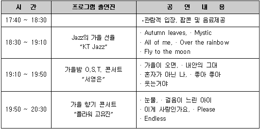 18일 오후 6시30분부터 재즈, 팝 등 공연 깊어가는 가을밤 미술관 앞마당에서 열리는 음악회는 어떤 색깔일까? 서울시립미술관은 오는 18일(수요일) 오후 6시30분부터 미술관 야외마당에서 ‘2006 서울미술관 하늘풍경음악회’를 개최한다. 18일부터 12월10일까지 전시되는 ‘제4회 서울 국제미디어아트 비엔날레’전시회 개막일에 맞춰 펼쳐지는 하늘풍경음악회에서는 재즈와 팝, 대중가요 및 연주 등을 다양하게 접할 수 있다. 재즈밴드인 KT Jazz, 가수 서영은, 플라워 고유진 등이 참여하는 음악회는 미술관 관람객을 비롯 일반 시민 누구나 참여할 수 있으며 팝콘과 음료수가 무료로 제공된다. 참가비는 없다. 단 국제미디어아트 비엔날레 전시 관람은 유료이다. 한편 서울시립미술관은 매년 봄과 가을 두 차례 음악회를 개최하고 있으며 하늘풍경음악회는 6번째 진행하는 공연이다. (문의: 서울시립미술관 교육홍보과 ☎ 02-2124-8921)